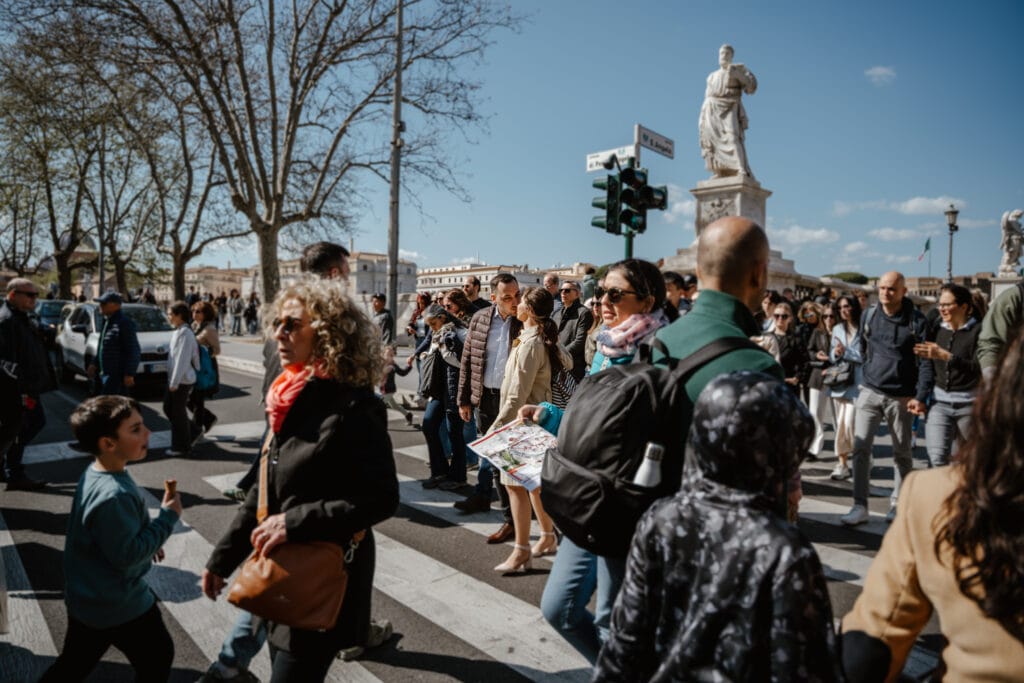 Po wylądowaniu na lotnisku Fiumicino nie było miejsca na zawahanie. Szybka decyzja: pociąg na Termini, około 30 minut, potem dwie stacje metra i wychodzimy w sam środek Rzymu — okolice Watykanu. Plac Świętego Piotra przywitał nas światłem i… tłumem. Przedświąteczny czas ma w sobie energię, która potrafi przytłoczyć, ale jeśli nauczysz się ją czytać — zaczyna działać na Twoją korzyść.
